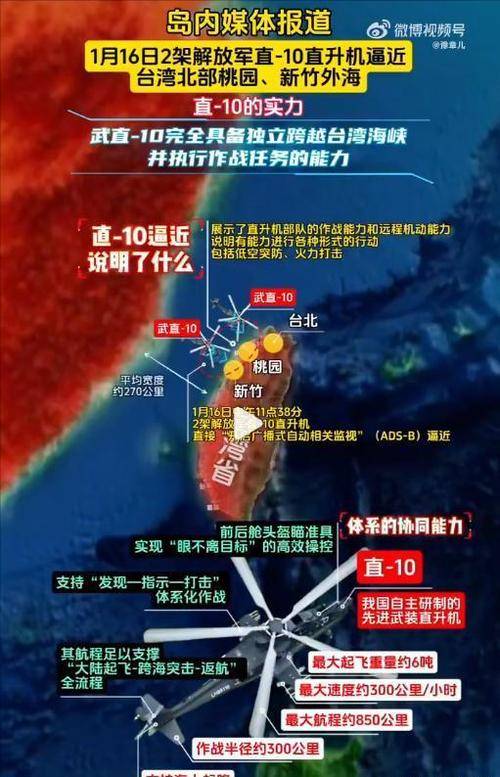 作为我国自主研发的先进武装直升机,直-10具备出色的对海打击、悬停监控能力,最高速度超300公里/小时,转场距离达800多公里,完全适配台海区域的作战需求。
