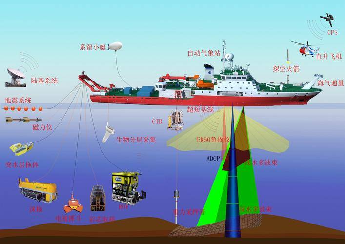 这艘调查船搭载的拖曳线列阵声呐能探测水下潜艇轨迹,地磁探测系统可定位海底磁性目标,水文测量设备能精准记录海水温盐跃层。